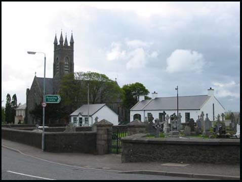 This church (left) was built by Rev. Hugh Smith (priest since 1798) in 1802, the date being inscribed on the lintel of the eastern door. It was a plain, slated building in the form of a parallelogram. Inside it has 2 galleries with a painting over the altar of the crucifixion and held 300 people. The parish priest in in 1819 was Rev. Michael O'Hagan after his uncle Rev. Cormac O'Hagan & in 1836 was Rev. Hugh O'Neill of Ballymoney & Rev. Hugh Connor 1856-1888. The church rebuilt again 1901 during the pastorate of Rev. Patrick Magee (1889- 1914) and again in 2005