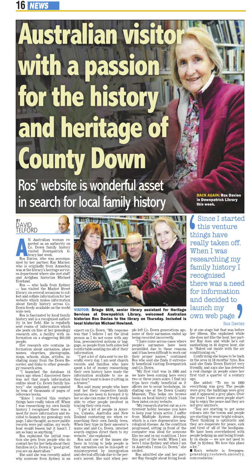 to rootsweb.com newsgroup for Co. Down & their research